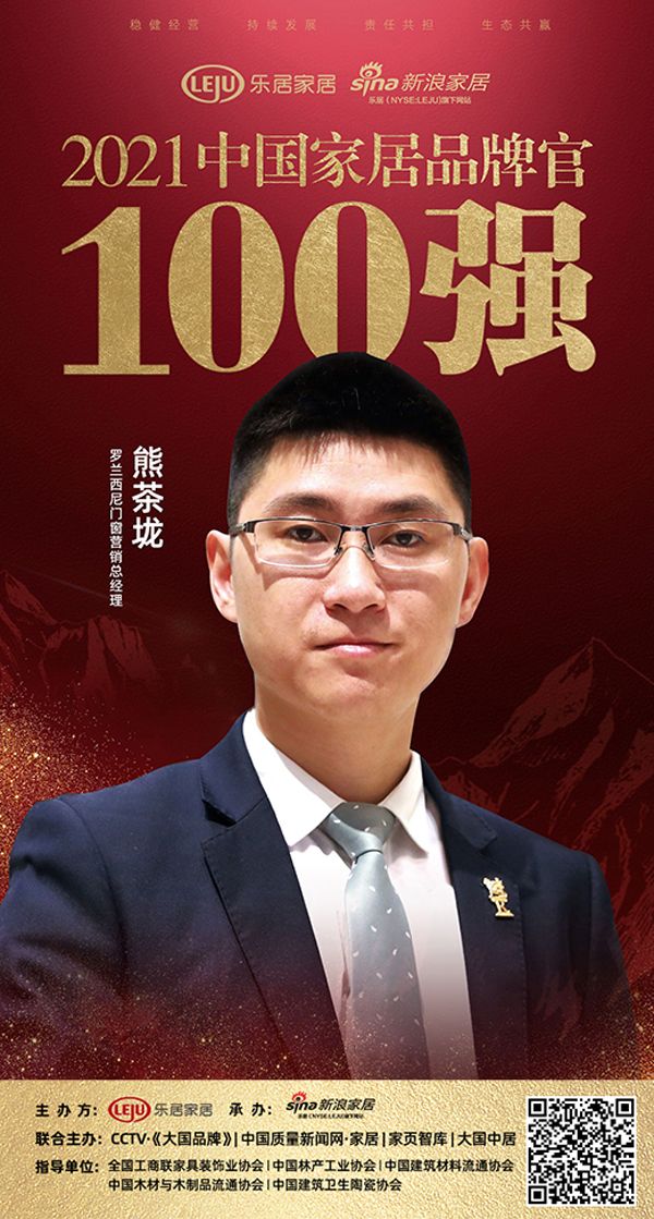 罗兰西尼门窗营销总经理熊茶垅荣获「2021中国家居品牌官100强」称号