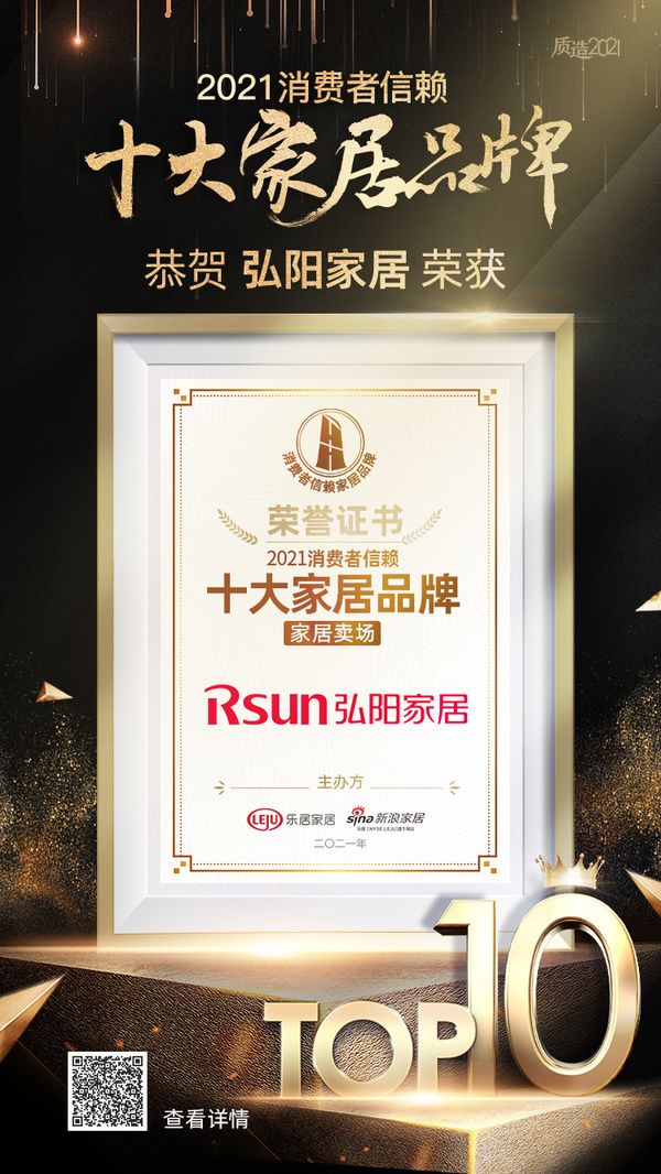 快讯|弘阳家居荣获「2021消费者信赖十大家居卖场品牌」称号