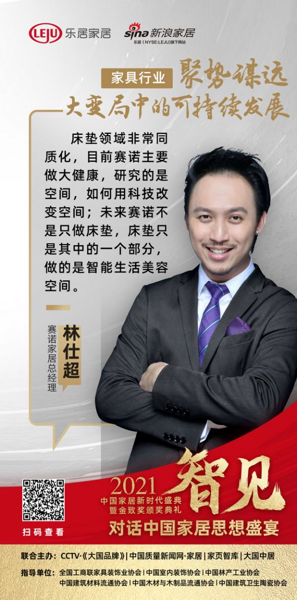 赛诺家居总经理林仕超则对同质化深有感触。近年来,我国床垫市场同质化现象日趋严重,床垫的外观千篇一律、功能种类与使用感也没有太大不同。因此,区别于其他同类型品牌,赛诺家居独辟蹊径,往大健康领域发展,注重科技,研究如何用科技改变空间。林仕超称,未来,赛诺家居将不只是做床垫,还会与美容、健康、运动等结合,让床垫成为其中的一个部分,做智能生活空间。