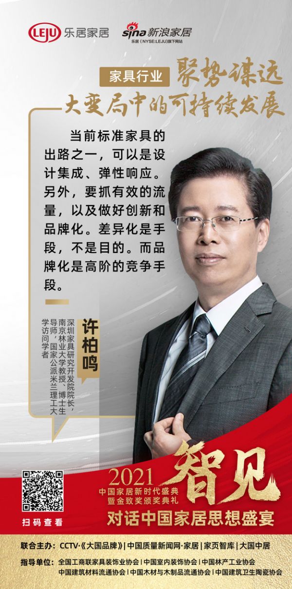最后,许柏鸣针对家具企业未来发展方向表达了自己的看法。他表示,成品家具企业直接转型定制,既无优势,也无必要。成品家具进化的方向不是全屋定制,而是标准单体和模块化基础上的设计集成。不能是单一的产品思维,产品+服务才是解决方案。活动家具企业的根本出路在于弹性响应创造独特价值,就此他还提出了三点建议:一是标准单体和模块化基础上的设计集成;二是技术层面要依靠弹性响应;三是从产业生态重塑渠道中寻找机会。他认为,当前市场流量众多,但品牌发展需抓有效流量,无效流量对品牌发展并无助益;另外,还需要做好创新和品牌化。差异化是手段,不是目的,而品牌化是高阶的竞争手段。