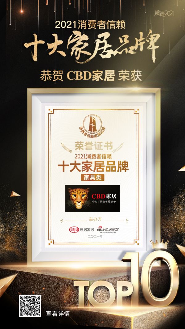 快讯|CBD家居荣获「2021消费者信赖十大家具品牌」称号