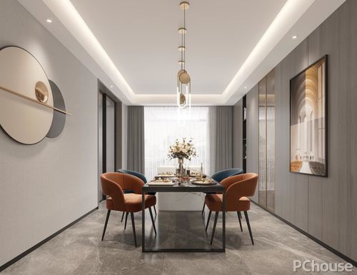 点缀精致的吊灯,在序列与氛围之间形成一幅美妙的乐章。墙壁挂件的弧形设计,不经意间增加了空间的趣味性,让空间的设计感更加强烈。