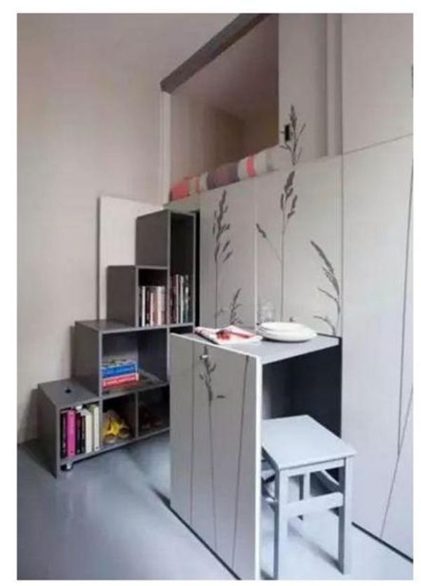 在去她家的路上,小美说起这套迷你公寓只有12平方,家里没有一件家具,只有一个靠墙的大柜子,所有的家具和生活物品都藏在这个大柜子里。我觉得很新奇,也有了心理准备,不过到了她家还是被眼前见到的景象惊住了。