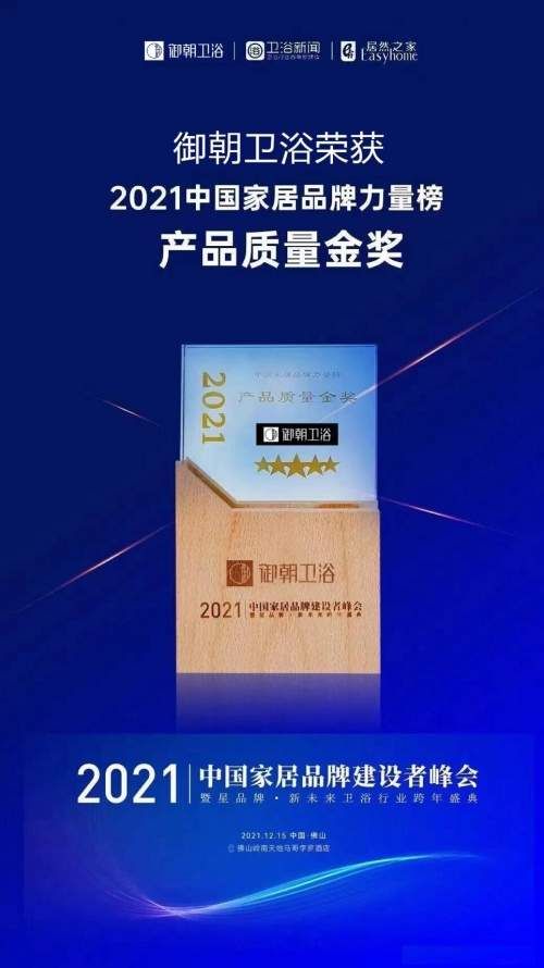 实力见证!御朝卫浴获2021中国家居卫浴品牌建设者峰会三大奖项!