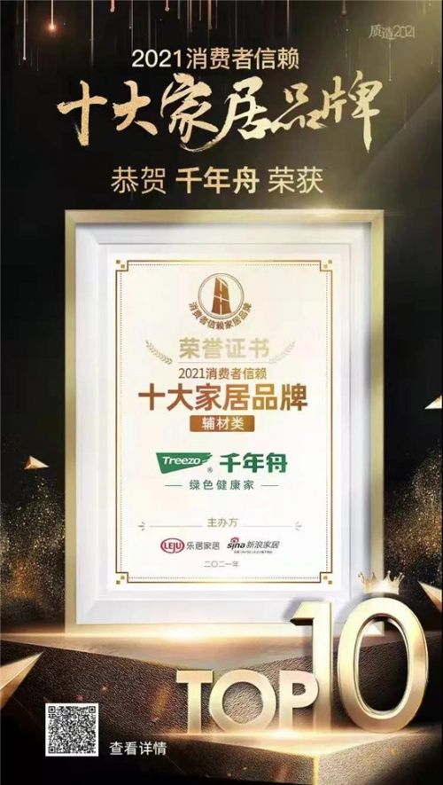 活动现场,备受业界瞩目的《2021消费者信赖十大家居品牌》、《2021中国家居百强品牌官》等评选榜单重磅揭晓。千年舟荣获“2021消费者信赖十大家居品牌”殊荣;千年舟集团副总裁田茂华入选“2021中国家居百强品牌官”。