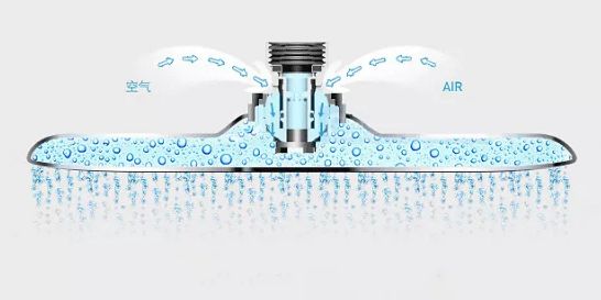 在接触高宝花洒之前,我也不知道这个技术是什么意思,后来了解使用后,才明白空气混入技术的好处。简单来说,花洒出水前大量混入空气,1份空气+2份水的黄金比例,大大节省了沐浴用水量,同时由于水分子中含有大量的空气存在,也减缓冲击力,让淋浴体感更温和。