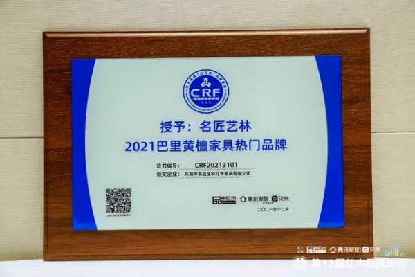 名匠艺林蝉联“2021巴里黄檀家具热门品牌”