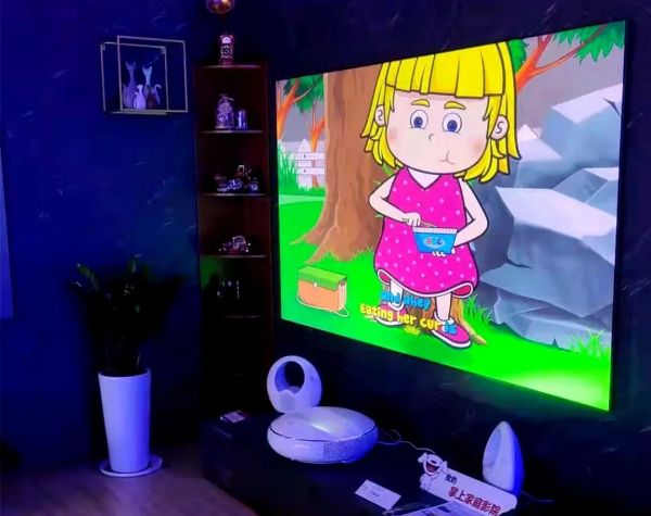 同时,它配备具有更高边缘相对照度的超短焦光学镜头,其中550层高精度、大角度、宽谱域的光学膜系让大尺寸画面的亮度、色彩更均匀,避免偏色、中心亮而边缘暗的问题。