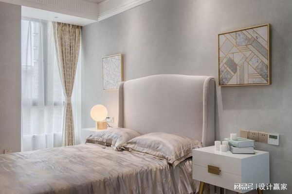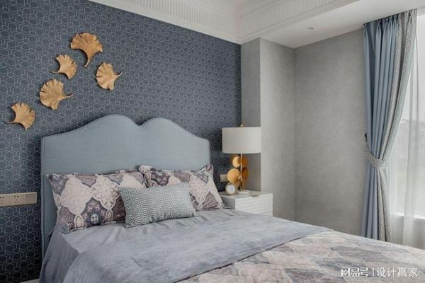 灰蓝的色彩搭配,融入金色的点缀,给人冲击的美感。白色床头柜,摆上精致台灯,为空间增添一丝优雅。简单舒适的窗户设计,搭配一半白一半蓝的窗帘,大自然的清新感扑面而来。