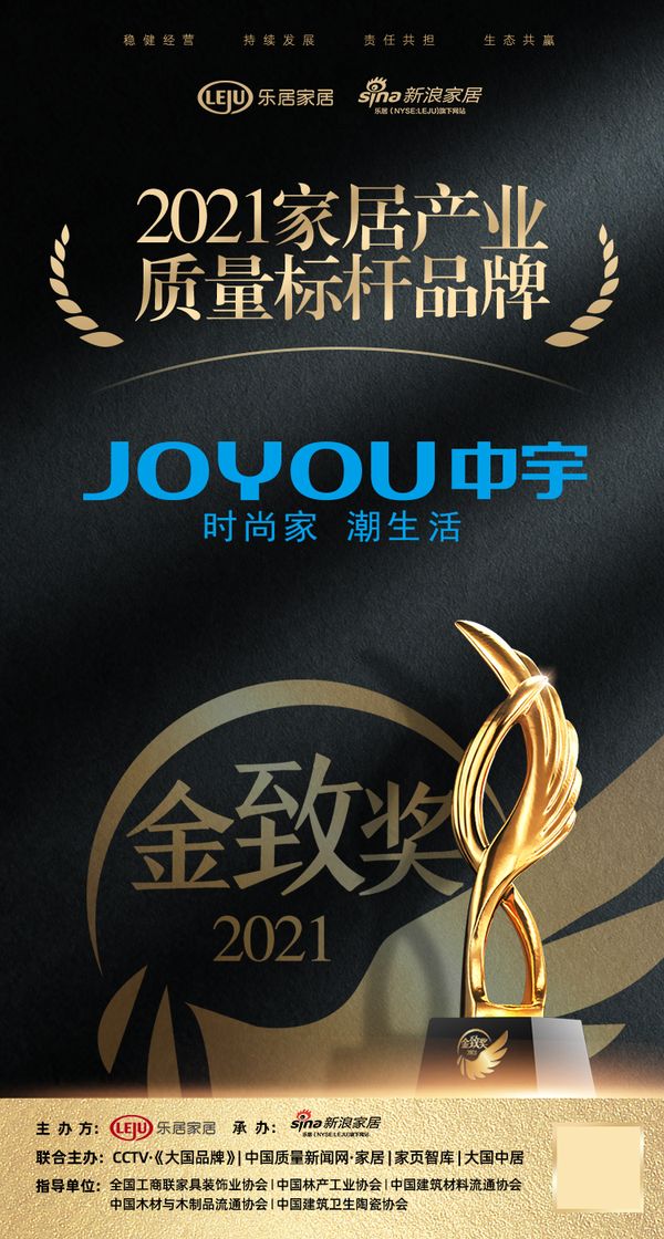 2021年12月18日,“智见·2021中国家居新时代盛典暨金致奖颁奖典礼”在广东佛山盛大举行。由乐居家居主办、新浪家居承办,CCTV•大国品牌、中国质量新闻网•家居、家页智库、大国中居联合主办的2021中国家居「金致奖」评选在盛典隆重揭晓。中宇厨卫荣获「2021家居产业质量标杆品牌」称号。