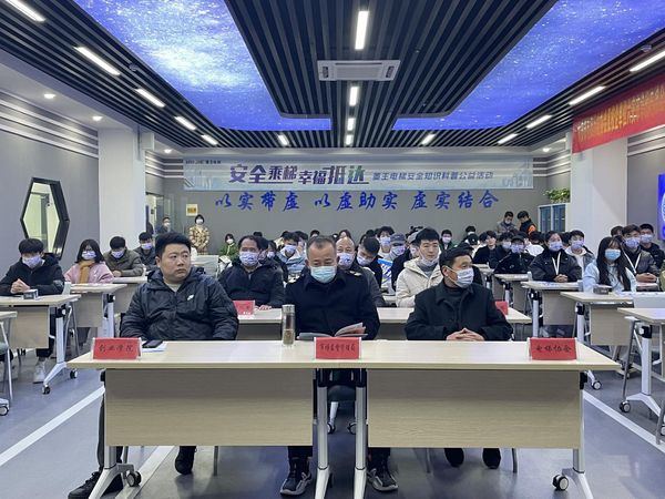 12月17日,菱王电梯在六安职业技术学院,开展了以“安全乘梯·幸福抵达”为主题的安全知识科普公益活动。六安市金安区市场监督管理局闫所长,六安市电梯协会杨秘书长,六安市职业技术学院领导、区域经销商代表以及在校学生近百人共同参与了此次活动。