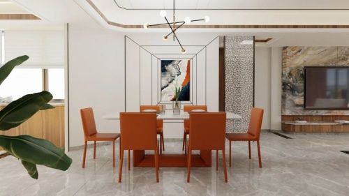 一饭一蔬皆为人间烟火,四季如此。作为居家空间中最有温度的餐厅空间,在保持整体澄澈通透风格的同时,也需要用心装点。以色彩美学为基础,橙色的加持让空间更加灵动而富有层次感,也带来丰收、心想事成的美好寓意。