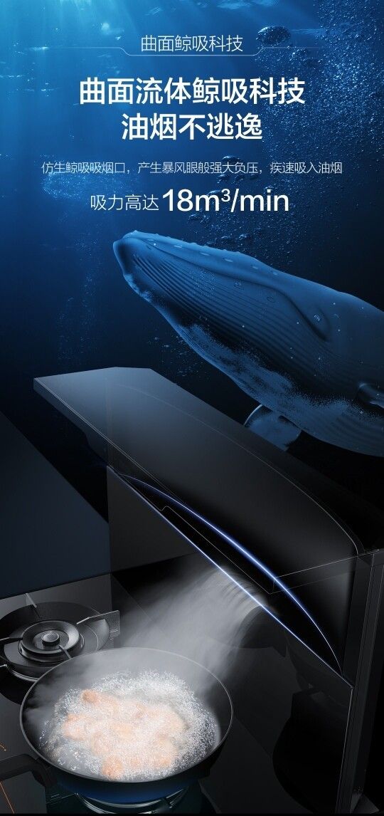 火星人30系列蒸烤炸一体集成灶利用微空气动力学原理,曲面流体鲸吸科技,产生暴风眼般强大负压,吸力高达18m³/min,可以很好的将产生的油烟强力吸进烟腔内部,在油烟扩散前,就能聚拢油烟,吸净效率更高,再也不怕爆炒辣子鸡时的油烟肆虐、呛鼻难忍了。
