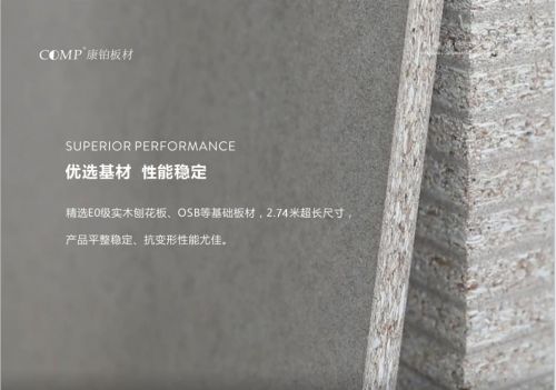 匠心品质,十年磨一剑的康铂PET板材:优选无醛级、E0级实木基材,2.745米超长尺寸,板面平整稳定,抗变形性能更是可在一门到底的设计安装中不差分毫。
