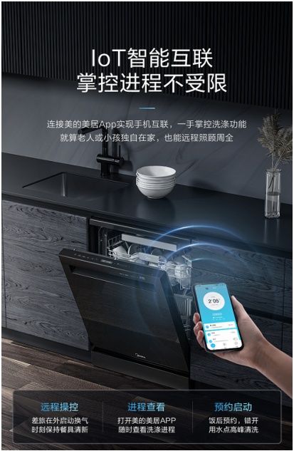 此外,美的未来洗碗机F50还搭载IoT智能互联功能,用户可以连接美居APP,实现远程操控,用户可随心掌控洗涤功能和实时查看洗涤状态,就算老人或者小孩独自在家,也能远程照顾周全,让用使用更加高效便捷。