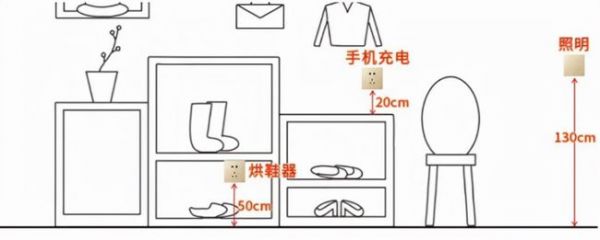 插座2个,一个安装在鞋柜附近,一个安装在鞋柜台面上方。