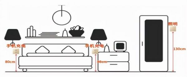 卧室安装6个插座,5个必备,预留1个;