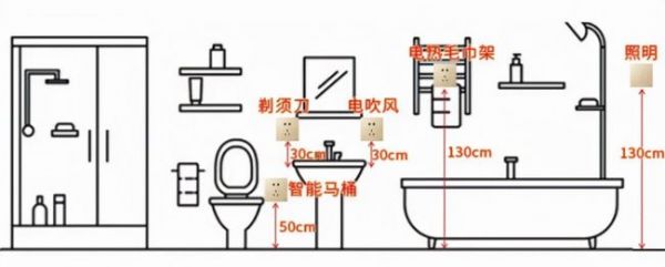洗脸池斜上方装1个插座,供电热水器或电热毛巾架的用电需求。