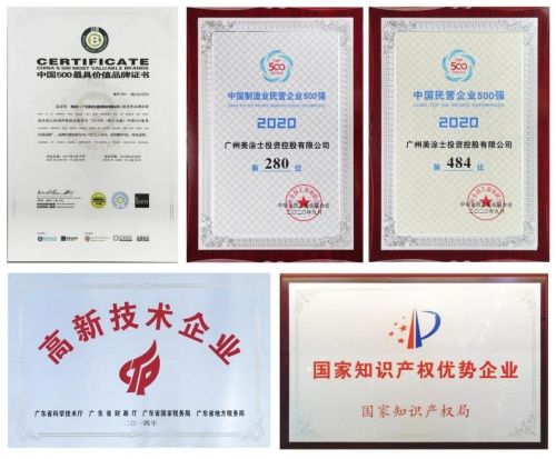 美涂士凭着稳定、可靠的产品质量,健康、环保、安全的产品优势,以及诚信、高度责任感的品牌形象,赢得了广大经销商和消费者的信赖和尊敬!同时获得中国500最具价值品牌、中国民营企业500强、国家知识产权优势企业、国家高新技术企业、广东省民营企业100强企业等诸多荣誉,这是对美涂士产品质量的认可,更是对美涂士完善的优质配套服务的肯定。