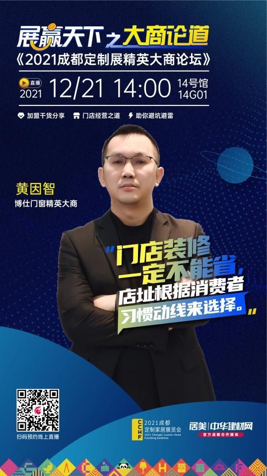 下午2点,博仕门窗精英大商黄因智出席并参与“展赢天下之大商论道——2021成都定制家居展精英大商论坛”,在线分享其成功经验,解读门店经营之道,也帮助想要创业加盟的新人提前避雷防坑。