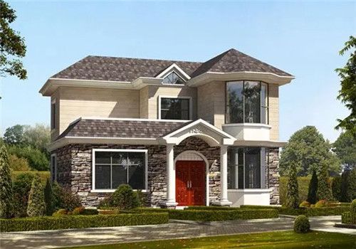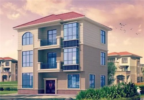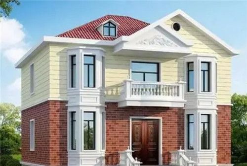 这款房屋看起来非常的亮眼,底层红色的文化砖+米白色的砖面,再配上红色的斜顶屋顶,则可以让房屋更有层次感。而弧形的窗户设计,既可以增加房屋的造型感,又可以增加室内的采光和通风,让业主居住起来更加的舒适。