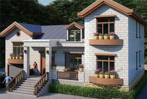 图片描述:这款房屋的占地面积大约为110㎡左右,外观大小适中,内部布局合理,采光通风良好,业主居住起来非常的舒适。阳台和大露台设计,既可以供业主晾晒衣服,又可以供业主乘凉观景。多边形的窗户设计,加强了别墅的立体感,衬托了别墅的气质,让别墅更有特色。橙色的屋顶,可以增加房屋的亮度,让房屋给人眼球一亮的视觉感。