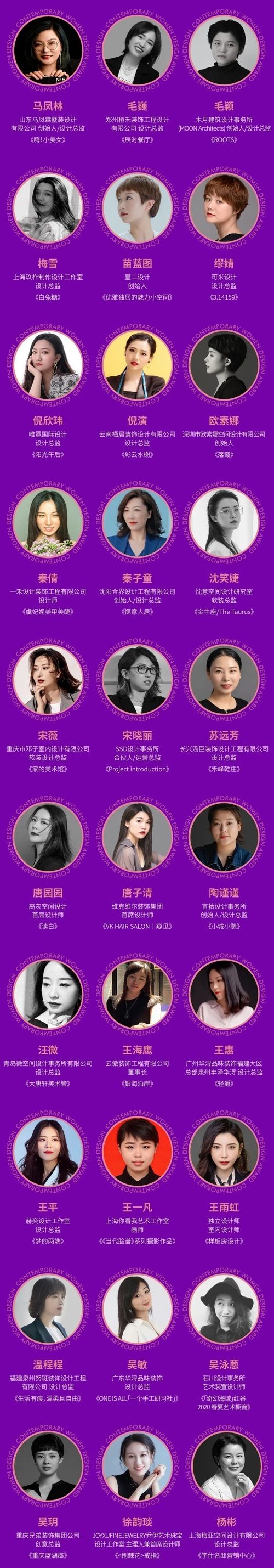 新浪家居设计频道讯 近日,上海国际设计周公布2021当代女性设计入围奖名单,当代女性设计奖旨在“用榜样的力量为女性设计发声”,来自全球的室内与建筑、时尚设计、软装陈设、艺术创造等领域的共100位优秀女性设计师上榜。