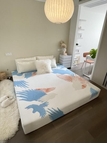 全友最近新上了一款和 JI CHENG联名的「兰羽」床垫,床垫填充了云感零压绵,十分柔软,可以很好的贴合身形,躺下后身体各个部位都能得到放松,而且面料也是天丝的,丝滑亲肤摸着就很舒服,内设独立袋装弹簧,不仅能很好的承托腰身,而起夜、翻身也互不干扰,睡眠质量有保证~