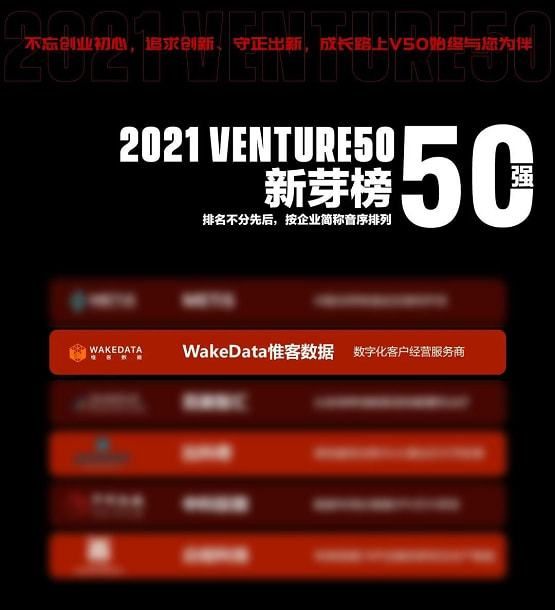 惟客数据实力入榜“2021 Venture50新芽榜50强