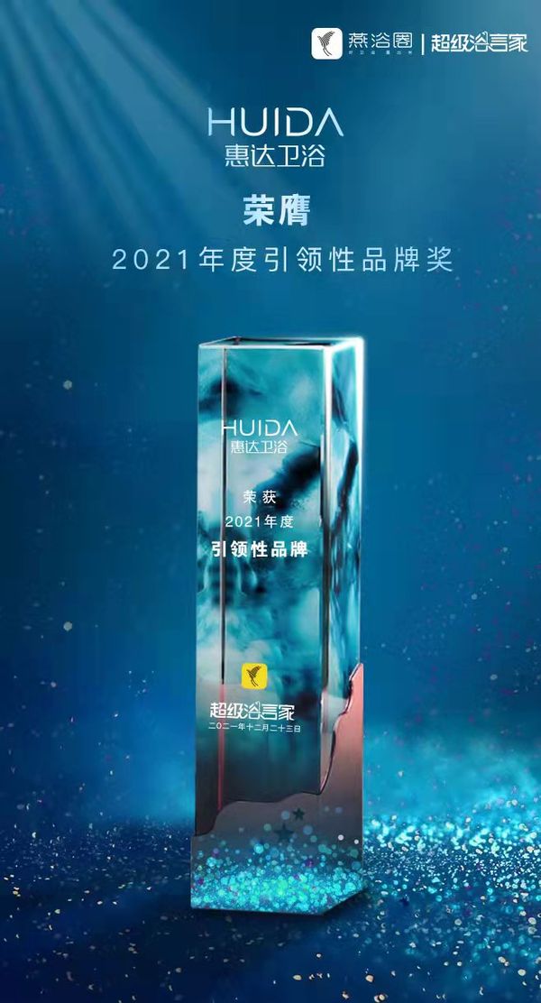 2021年12月23日, 超级“浴”言家——2022跨年思享会在佛山隆重举行,本届大会以年度盘点、趋势发布、行业洞察、跨界学习为核心,畅谈2021年行业的跌宕起伏,寻找2022年行业新的增长点。惠达执行总裁殷慷受邀参加《BOSS浴言论坛》,与行业知名企业创始人及高管探讨“卫浴行业的下一个增长点”。同期,惠达卫浴凭借近40年来的冠军品质荣获“2021年度引领性品牌”大奖。