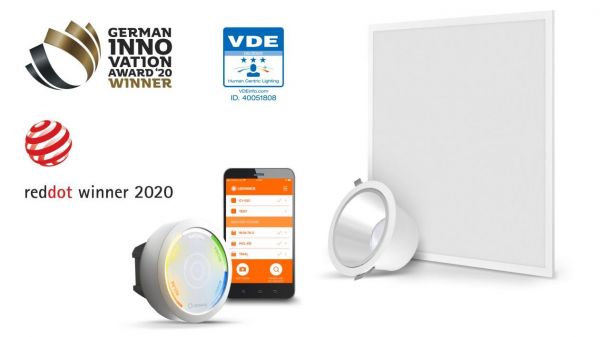 如近年来备受追捧的人因照明,其实朗德万斯于2018年的法兰克福照明展上就已率先向世界展示了基于人因照明的办公室场景,其独创的BIOLUX HCL系统是有史以来第一个获得VDE HCL证书的HCL系统。这一系统从人因工程学的角度出发,采用与节律相结合的动态照明形式,配备基于Zigbee技术开发的VIVARES照明管理系统,让办公人员可以根据自身需求和个人偏好设置色温与光照强度,选择不同的照明模式,保障视觉作业,同步身体时钟,提高视觉舒适度和工作绩效。不仅是办公场景,这个能平衡节律照明与视觉照明的系统几乎适用于所有人居空间,能有效地为用户提供视觉、情绪和生理上的益处。