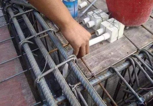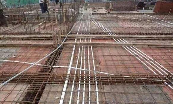 2、管材挑选好之后,要根据设计图将管线预埋进梁内或楼板内。若预埋在楼板内的,要将管线布置在上下两层楼的钢筋网中间,并进行固定。