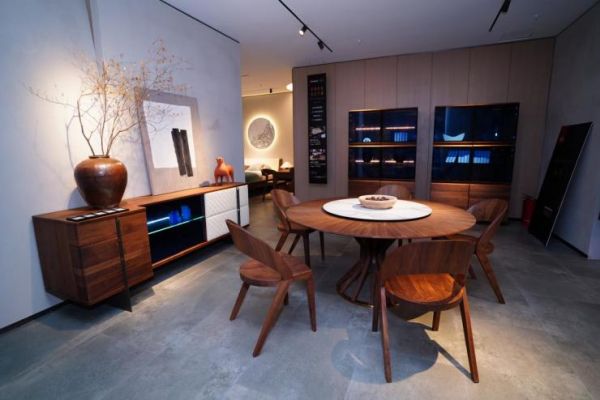 在原材料选用方面,百强选用质地密实、品相完好的珍贵北美黑胡桃木,辅以中国传统榫卯结构,还选用了“零”醛添加原木结构板,加上严苛的选材和质量验收流程,住户的健康安全和家居空间的生态环保都得到了保障。百强对家具的设计都偏好于“悬浮感”,以此来巧妙削弱实木的厚重,见光不见灯的设计融现代科技于实木家具,更能营造科幻感。
