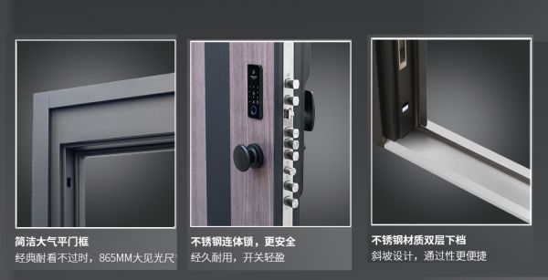 在产品设计方面,云智星绝继承了传统入户门的设计风格,以古代入户门的“精致”、“优雅”气息为范本,结合当前制造市场的审美趋势,打造出独属于自身的经典“框形设计”,并且将加入了极窄铝卡边和门缝无痕元素,让产品更具魅力、更具吸引力。云智星在摸索与实践的过程当中,打造出独特的美学结构,借助无卡边工艺,努力追求“空间的品质”,并通过物理和精神两个维度的设计逻辑,让居住体验能够攀登至一个崭新台阶。