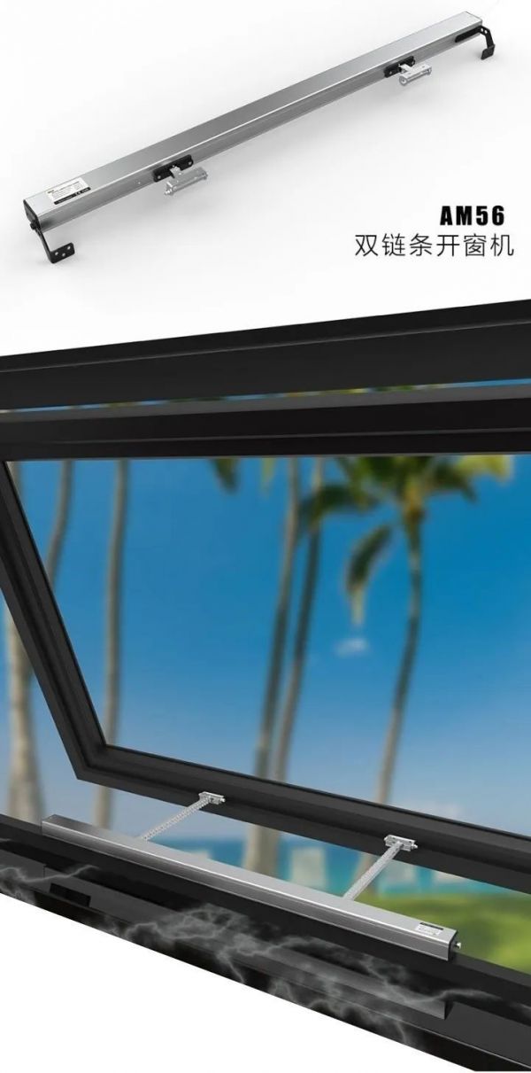 每一次精雕细琢,都是为了更好的与你见面,AM56双链条开窗机。双链输出,2倍推拉力,满足大窗开启动力,全面适配任意场景。
