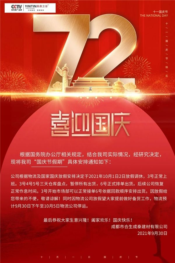 72周年盛世华诞丨英鼎卫浴祝祖国生日快乐,繁荣昌盛!
