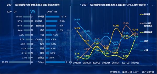 2021年是充满挑战的一年,欧瑞博坚持创新、奋发拼搏,凭借领先全屋智能技术方案与耀眼的成绩,从一众佼佼者中脱颖而出。在2021’Q3精装修市场智能家居系统配套数据排名中,欧瑞博以15.1%的市场份额,雄居中国地产精装智能家居系统市场Top1。再一次印证了智慧地产领域的硬核号召力!今年以来,欧瑞博先后完成雅居乐天际、御龙壹号、珠江天河壹品、中海熙园、旭辉森宇苑等多个地标级地产项目的智能化落地。截至目前,欧瑞博已完成碧桂园、金地集团等50多家知名地产商超300个高端智慧社区和智能家居的整体落地,成为美的置业、旭辉集团、世茂集团、花样年等头部地产集团战略采购供应商,是智慧地产项目落地规模最大的全宅智能家居品牌之一。