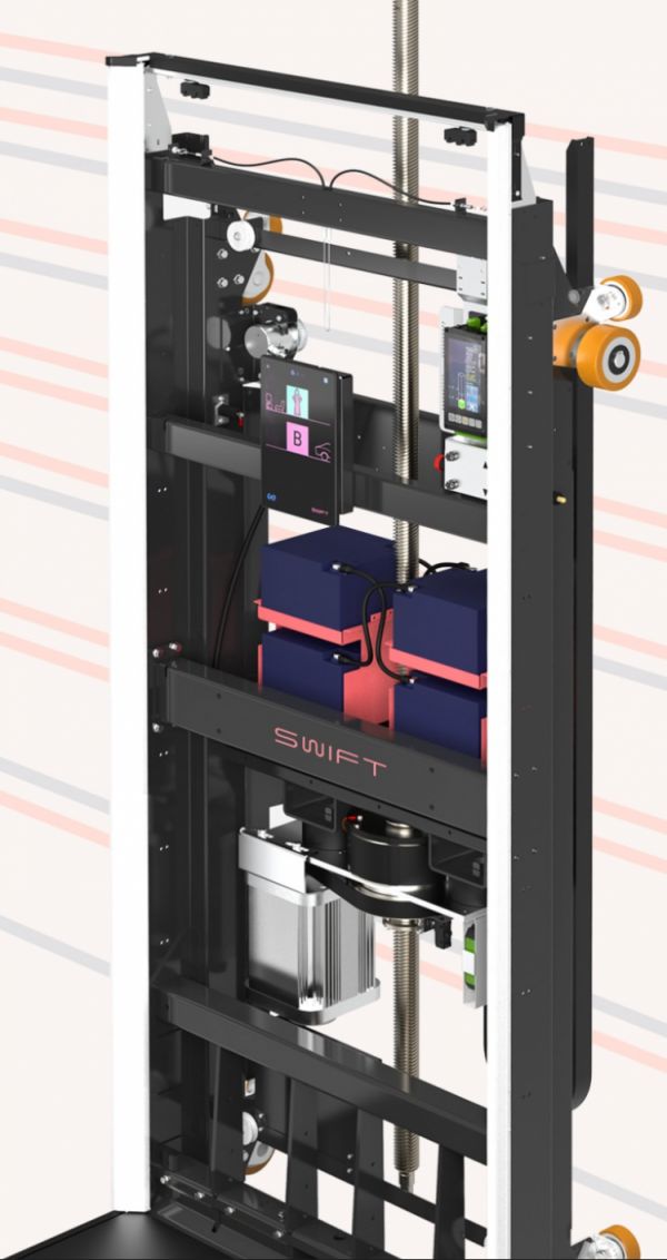 受新型环保电池概念的启发, SWIFT的独特生态驱动及新一代螺杆螺母系统具有强大的安全保护功能。电梯采用新一代驱动技术Eco-Drive(生态驱动),当电梯下降时,可为电池进行自动充电,使电梯在安静运行的同时,减少能耗。