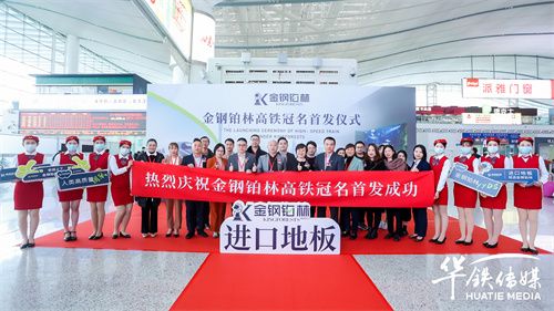据悉,金钢铂林总裁李文娟、深圳市金钢铂林实业有限公司全国经销商代表王刚、华铁传媒集团有限公司深圳分公司销售副总经理潘程兆等领导嘉宾出席了本次金钢柏林高铁冠名首发仪式。