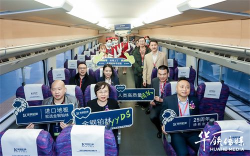 记者27日10时登上了此趟专列,看到了车身彩贴、车厢内海报、桌板背贴、座位头片均有金钢铂林的品牌形象。据悉,列车开出后的每一站点都有关于金钢铂林信息的提示语音播报,这将进一步提升品牌的传播效果,加深向南来北往的乘客对金钢铂林的品牌记忆。