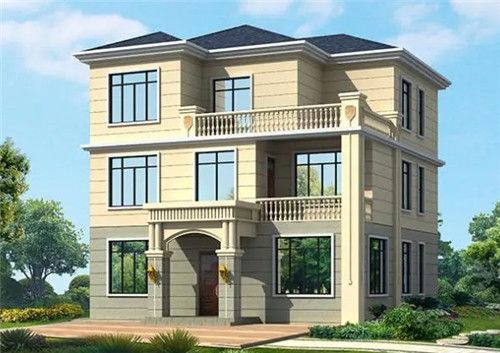 这是一款欧式风格的房屋,外墙看起来非常的简洁大气,给人一种爽朗明快的感觉,外墙里面以浅色砖面为主,再搭配上蓝色坡屋顶,低调而不失奢华,阳台多露台设计,可以增加业主的活动空间,多窗设计为室内增加采光,护栏欧式栏杆,安全稳定又美观。