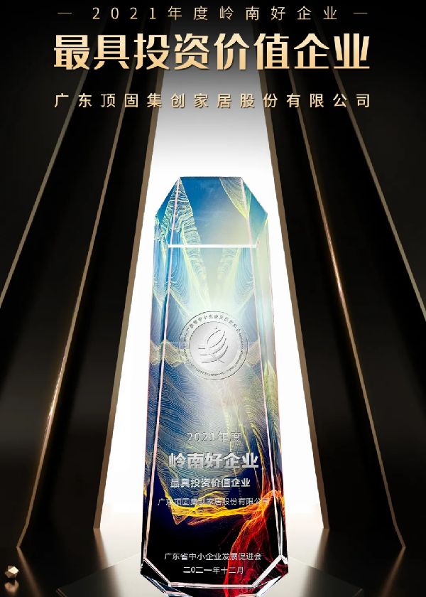 新浪门窗频道讯 近日,顶固在广东省中小企业发展促进会16周年年会暨“2021年度岭南好企业”发布会上,荣膺“最具投资价值企业”。
