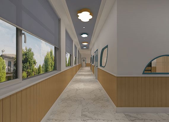 医院也是人流密集型场所,对装饰材料要求也较高。但最主要的还是对于材料的抗菌性能有特殊要求。所以HERSLIDE GRP天花板是病房及通道吊顶的首选材料。