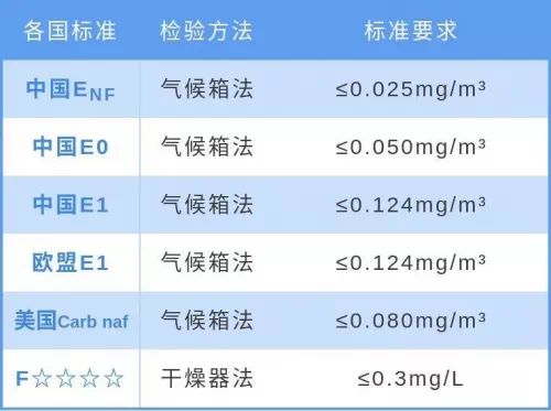 《人造板及其制品甲醛释放量分级》(GB/T 39600-2021),将室内人造板及其制品的甲醛释放量按照限量值从原来仅有的一个E1级别,细分为E1、E0、ENF三个级别。其中,E1级仍然保持为≤0.124mg/m³、E0级则对标CARB-NAF(美国加州空气质量委员会-无甲醛添加)标准为≤0.050mg/m³,ENF级为≤0.025mg/m³。新提出的ENF级,因为甲醛释放量比美国的标准还要严格,被称之为史上最严苛的人造板新国标。