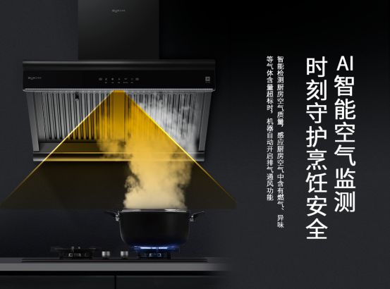 为了更好地守护厨房安全,索奇C800油烟分离烟机,还搭载了高科技AI智能空气监测功能,当厨房空气中含有燃气、异味等气体含量超标时,机器自动开启排气通风功能。