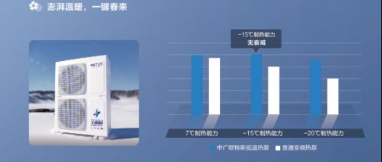 中广欧特斯带地暖的中央空调,在-15℃环温下制热能力无衰减,制热量较普通变频热泵提升20%;-20℃强力制热,室内温暖如春;-35℃超低温采暖,依旧稳定运行。轻松应对复杂多变的室外环境,稳定安全的高效运行。