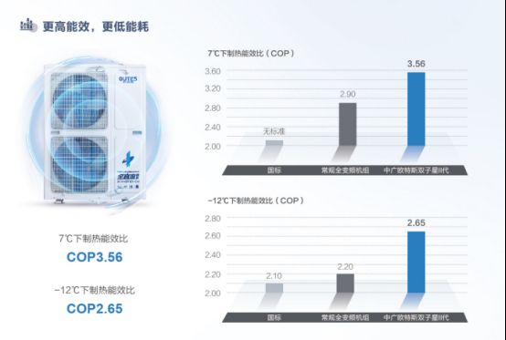 中广欧特斯带地暖的中央空调,制冷IPLV4.50远超国家一级能效标准,获得国家节能产品认证,名副其实的“产出好,耗能少”。5℃低温制冷,55℃超高温制冷,满足各种极端高温天气制冷需求。