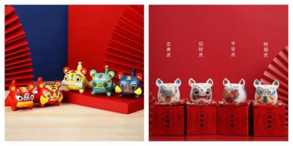 近几年,与传统文化结合的新国潮风也深受大众喜爱。山迪的五虎临门就以传统布老虎为原型,个性的配色与国风造型相得益彰,颇具复古风韵。东方泥土的陶瓷唐卜虎摆件和虎抱钱陶瓷存钱罐,还可以根据需求,提供免费的激光订制服务。