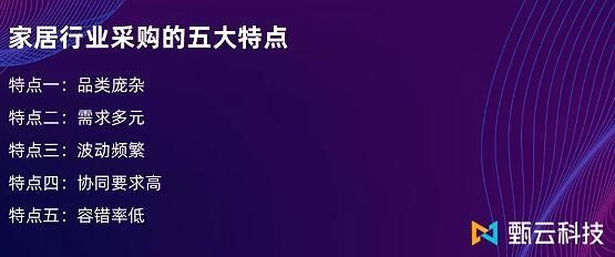 4、协同要求高。随着电商、短视频、直播等互联网业态的出现,消费场景多元化,且消费需求传导至家居企业的方式更便捷,速度更快。同时存在成品备货类采购需求和按订单定制的采购需求。企业需要对市场做出快速反应,尤其在讲究流行趋势的家居行业,整个供应链的协同性和敏捷性直接决定了其市场竞争力;