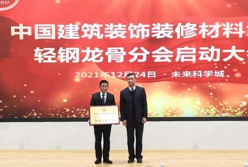 中国建筑装饰装修材料协会副会长兼秘书长王保祥分别为轻钢龙骨分会、全屋装配分会授牌